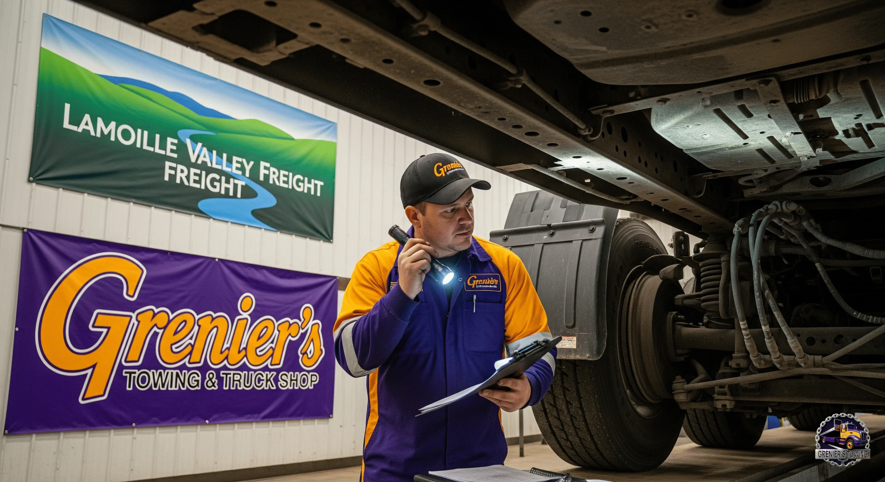 At Grenier's Towing & Truck Shop in West Charleston, VT, we specialize in rigorous DOT inspections for heavy-duty vehicles to ensure compliance with federal regulations. With over 20 years of inspection expertise, our certified technicians perform thorough checks, serving Vermont and New Hampshire, including Orleans, Essex, Caledonia, Lamoille, and Washington Counties, as well as towns like Laconia and Meredith.