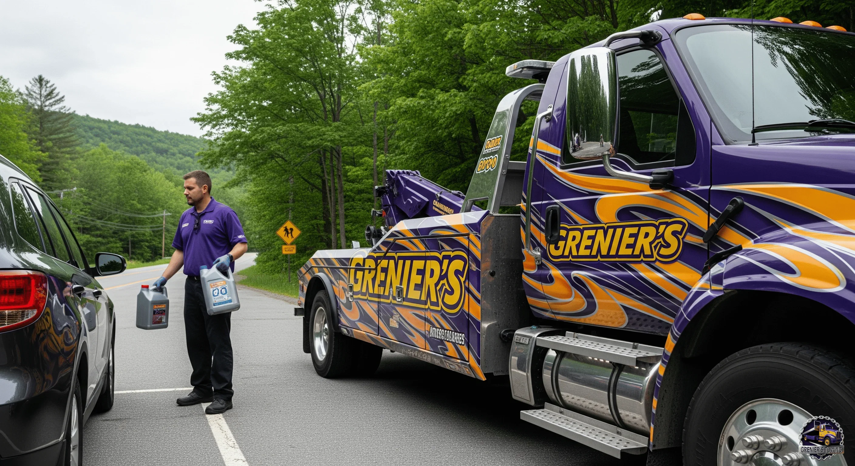 Grenier's Towing & Truck Shop is equipped to deliver fuel and essential fluids, including gasoline, diesel, coolant, and oil, to any vehicle type, from cars to heavy-duty trucks. As an AAA-approved provider, we ensure safe and rapid delivery, trusted by major insurance companies across Vermont and New Hampshire.