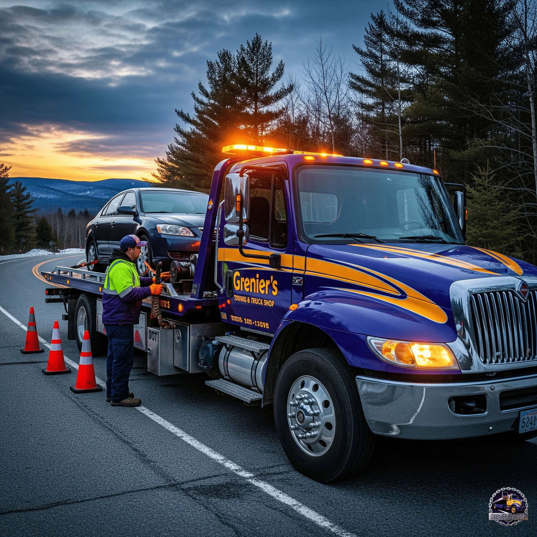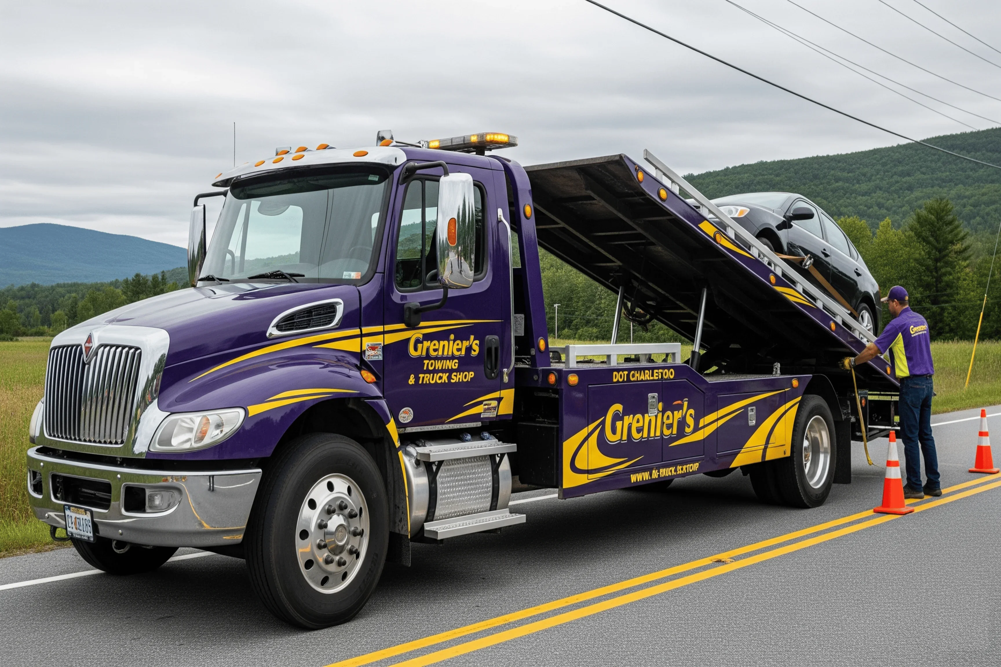 At Grenier's Towing & Truck Shop, we are the undisputed leaders in 24/7 light-duty towing and emergency roadside assistance. Whether you're stranded with a car, SUV, or motorcycle in West Charleston, VT, or need urgent help in Laconia, NH, our AAA-approved fleet is dispatched immediately to provide expert, damage-free vehicle recovery.