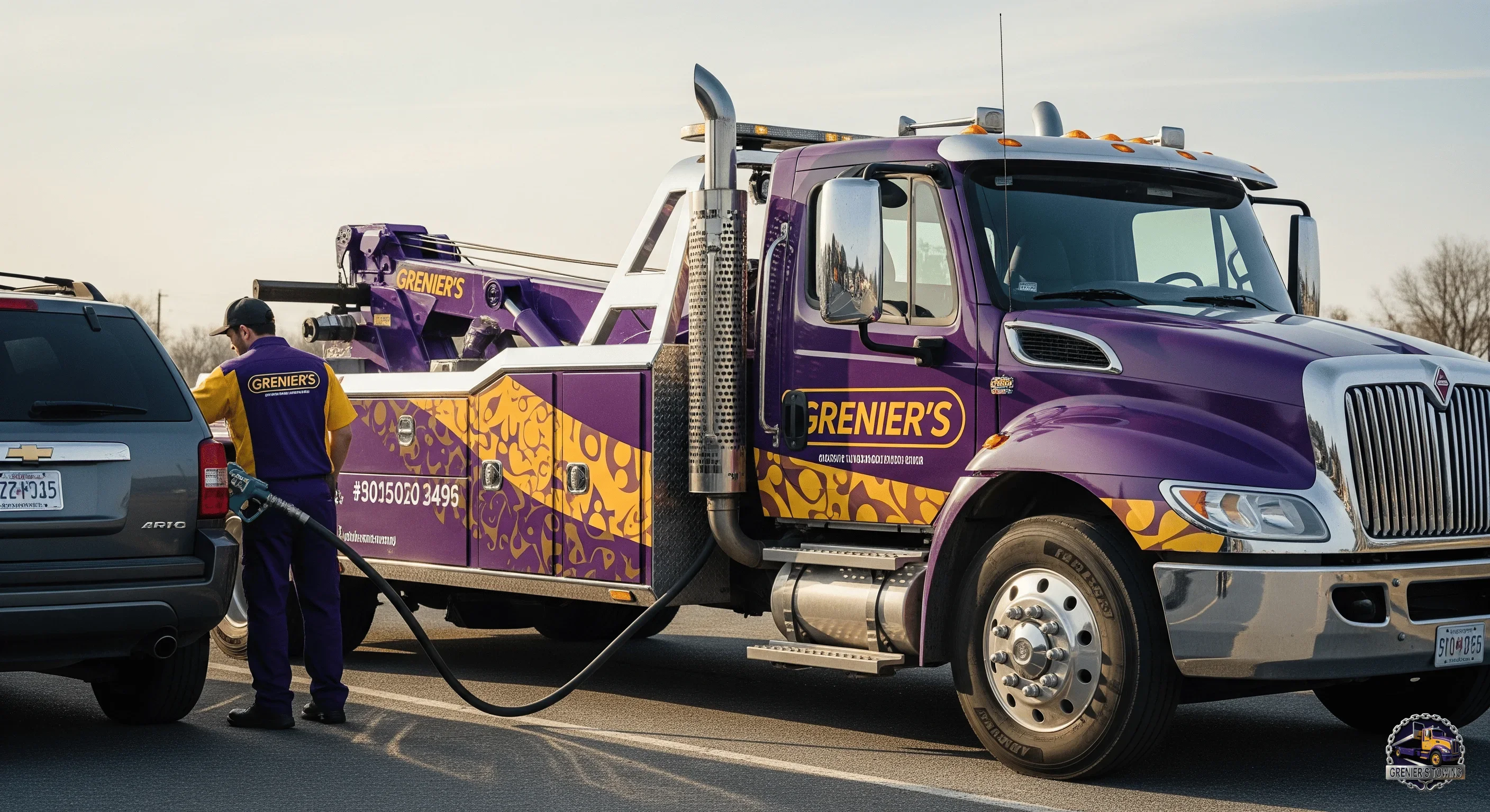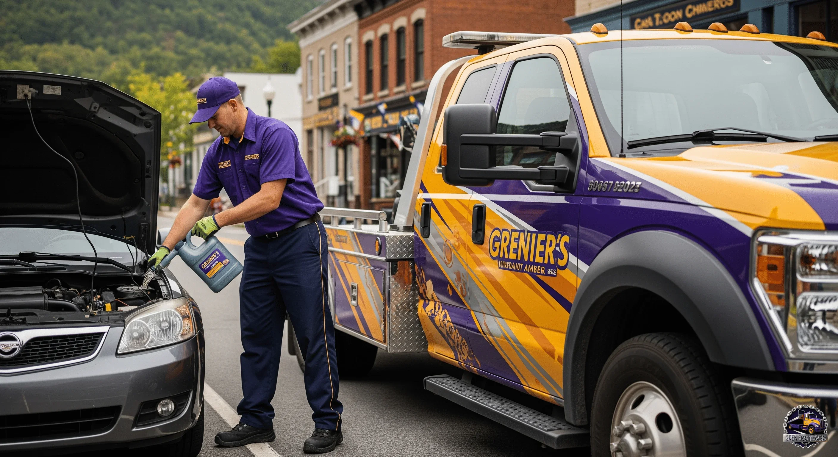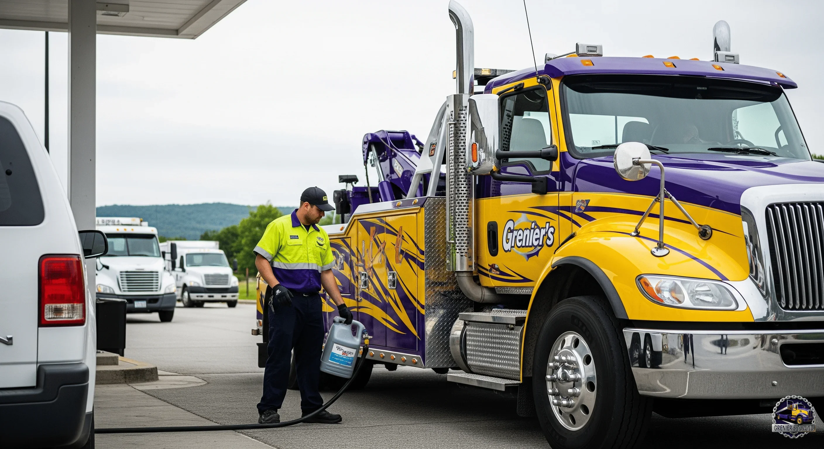 Grenier's Towing & Truck Shop is equipped to deliver fuel and essential fluids, including gasoline, diesel, coolant, and oil, to any vehicle type, from cars to heavy-duty trucks. As an AAA-approved provider, we ensure safe and rapid delivery, trusted by major insurance companies across Vermont and New Hampshire.