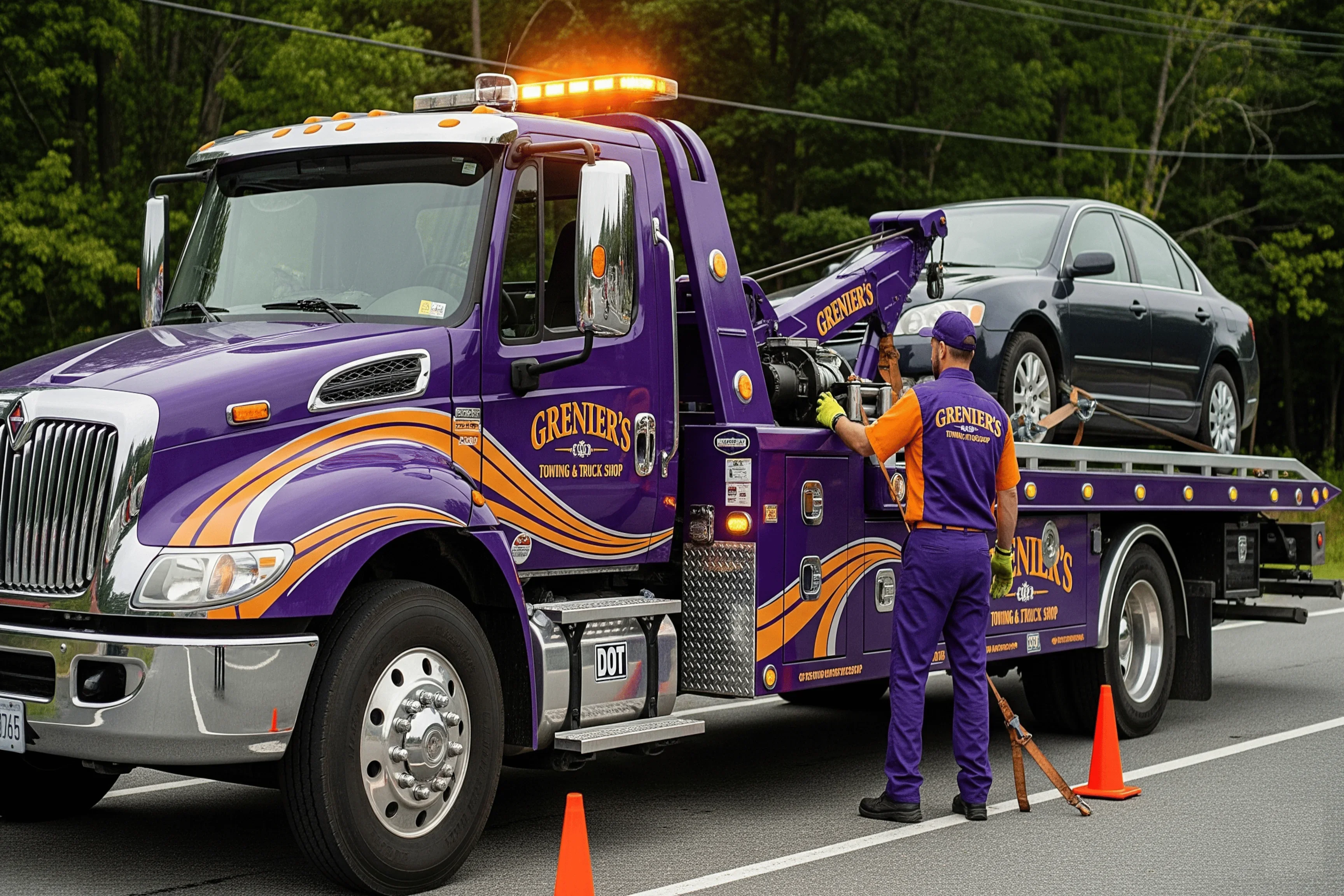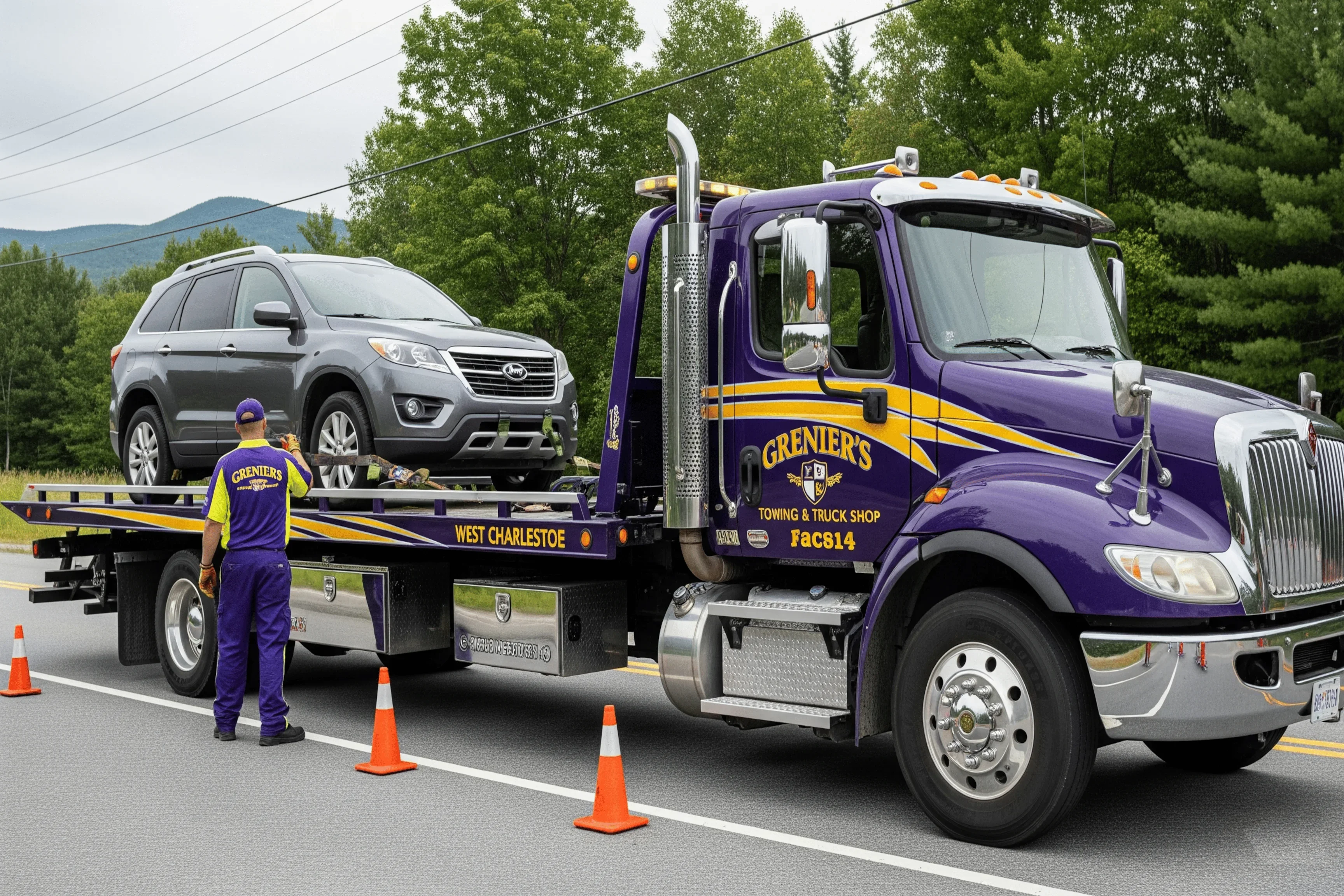 At Grenier's Towing & Truck Shop, we are the undisputed leaders in 24/7 light-duty towing and emergency roadside assistance. Whether you're stranded with a car, SUV, or motorcycle in West Charleston, VT, or need urgent help in Laconia, NH, our AAA-approved fleet is dispatched immediately to provide expert, damage-free vehicle recovery.